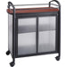 Complementing the rest of Safco's Impromptu line, this mobile refreshment cart exceeds expectations with a magnificent steel frame and translucent, polycarbonate side panels. It can be moved to virtually anywhere in your building. The top rail secures beverages so the entire unit can be moved without any spills. The gray laminate top (34" wide x 17" deep) offers plenty of space for beverages and more. Versatile storage area has one fixed interior shelf and doors to secure items. Steel frame features a silver powder-coat finish. Maneuver cart on four swivel casters (two locking).