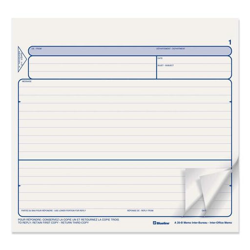 Blueline Triplicate Bilingual Inter-Office Memo Form - 250 Sheet(s) - 3 PartCarbonless Copy - 8" (20.3 cm) x 8 1/2" (21.6 cm) Sheet Size - 250 / Box
