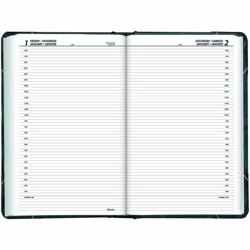 Blueline Traditional Daily Planner, 13-3/8" x 8" , Bilingual, Green - Daily - 12 Month - January 2026 to December 2026 - 7:00 AM to 7:00 PM - Half-hourly - 1 Day Single Page Layout - 8" (203.20 mm) x 13 3/8" (339.73 mm) Sheet Size - Sewn - Black, Green -