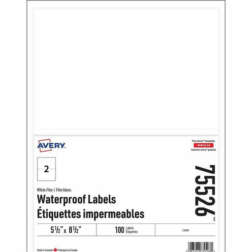 Avery Rectangle Waterproof Labels - Waterproof - 5 1/2" (139.70 mm) Width x 8 1/2" (215.90 mm) Length - Permanent Adhesive - Rectangle - Laser - White - Film - Water Resistant - Tear Resistant, Scuff Resistant, Durable, Smudge Resistant - 2 / Sheet - 100