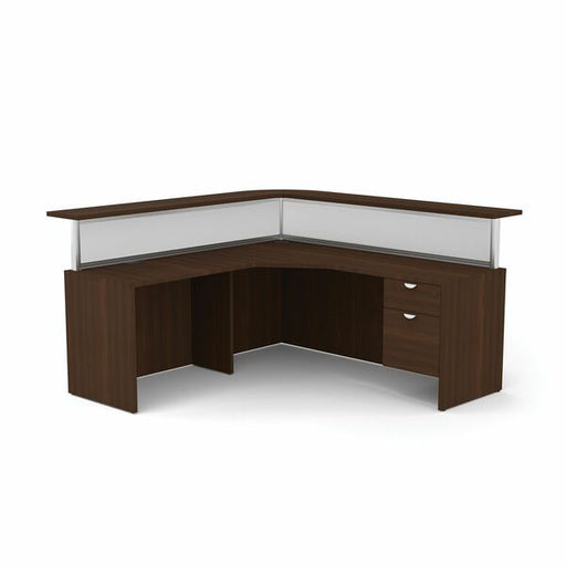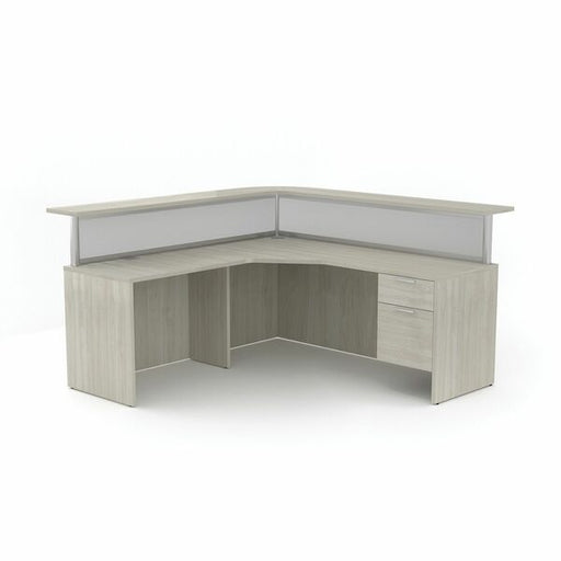 HDL L-Shape Reception Desk - L-shaped Top - Reception - Winter Wood - Polyvinyl Chloride (PVC), Thermofused Laminate (TFL), Powder Coated Aluminum, Aluminum