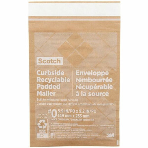 Scotch Mailer - Bubble/Shipping - #0 - 5 1/2" (139.70 mm) Width x 9" (228.60 mm) Length - Self-sealing - Brown - Paper - 20 / Pack