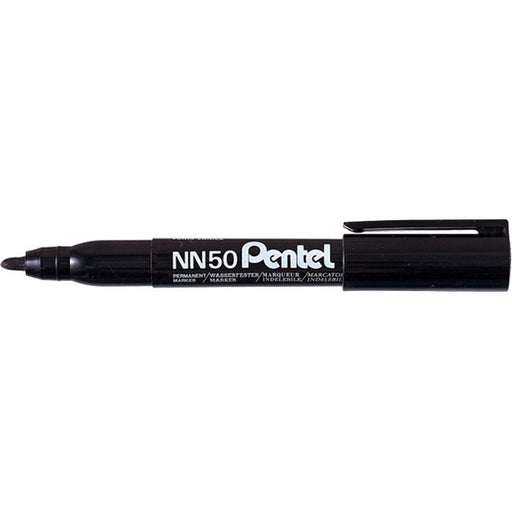 Pentel NN50 Bullet Point Marker - Bullet Marker Point - Refillable - Black Ink - Black Barrel - 12 / Pack