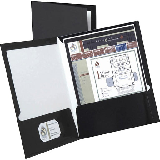 Oxford Letter Pocket Folder - 8 1/2" (215.90 mm) x 11" (279.40 mm) - 2 Pocket(s) - Black - Laminated - 25 / Box
