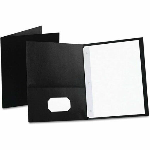 Oxford Letter Pocket Folder - 8 1/2" (215.90 mm) x 11" (279.40 mm) - 135 Sheet Capacity - 3 x Prong Fastener(s) - 2 Internal Pocket(s) - Black - 1 Each