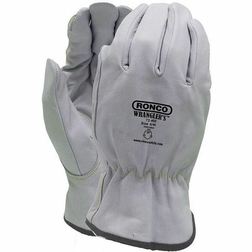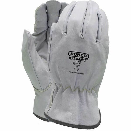 RONCO Wrangler's Gloves - Medium - Abrasion, Cut Protection - Medium Size - Goatskin, Grain Leather - White - Abrasion Resistant, Puncture Resistant, Comfortable, Durable, Shirred Back, Gunn Cut - For Industrial, Automotive, Oil & Gas, Machinery, Maintena