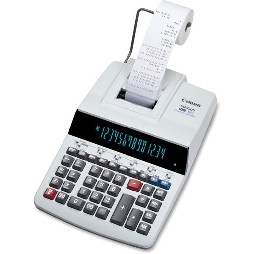 Canon MP49DII Desktop Printing Calculator - Dual Color Print - Dot Matrix - 4.8 lps - Heavy Duty, Extra Large Display, Auto Power Off, Clock, Calendar, Sign Change, Item Count - 14 Digits - Fluorescent - AC Supply Powered - 3.4" (86 mm) Height x 8.9" (227