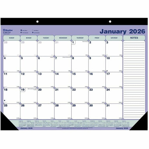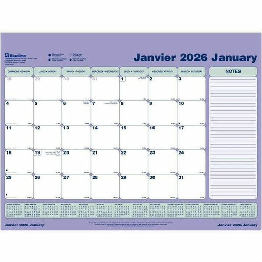 Blueline Monthly Desk Pad Calendar, 21-1/4" x 16" , Bilingual - Monthly, Yearly - 12 Month - January 2026 to December 2026 - 1 Month Single Page Layout - 21 1/4" (539.75 mm) x 16" (406.40 mm) Sheet Size - 2 x Holes - Desk Pad - Wall, Wall Mount - Chipboar