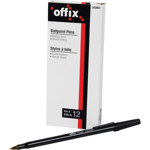 Offix Ballpoint Pen - Medium Pen Point - Black Ink - 12 Box