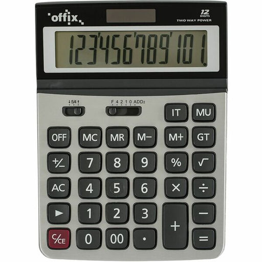 Offix D28 Desktop Calculator - Large Display, 4-Key Memory - 12 Digits - Battery/Solar Powered - 7.5" (190.50 mm) Height x 5.5" (139.70 mm) Width - Desktop - 1 Each
