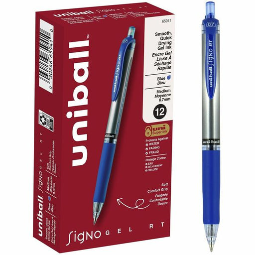 uniball™ SigNo RT Gel Ink Pens - Medium Pen Point - 0.7 mm Pen Point Size - Refillable - Retractable - Blue Gel-based Ink - 1 Each