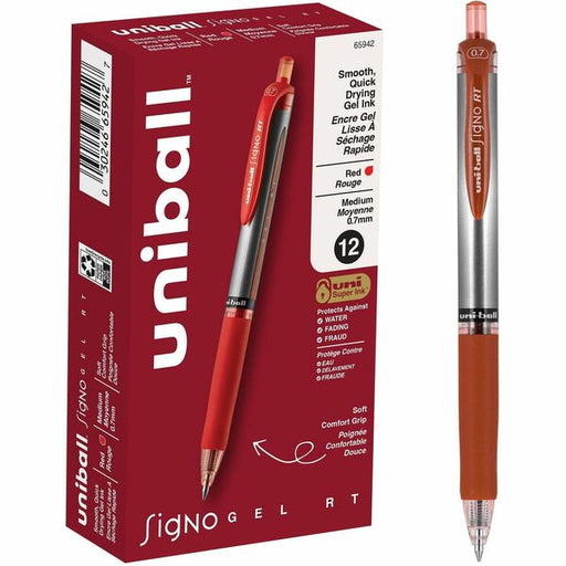 uniball™ SigNo RT Gel Ink Pens - 0.7 mm (0.03") Medium Pen Point - Refillable - Retractable - Red Ink - Gel-based - Red Metal Barrel - 1 Each