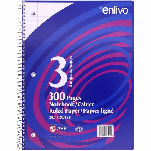 APP Coil Exercise Book, Ruled, 10.5"x8" , 300pg, 3-Subjects - 3 Subject(s) - 300 Pages - Spiral - 10.50" (266.70 mm) x 8" (203.20 mm) - 1 Each