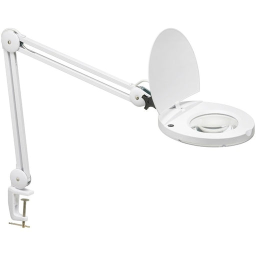 Dainolite 8W LED Magnifier Lamp, White Finish - 47" (1193.80 mm) Height x 9" (228.60 mm) Width - 1 x 8 W LED Bulb - Painted White - Adjustable, Dimmable - 760 lm Lumens - Metal, Glass - Desk Mountable, Table Top - White - for Table, Desk, Office, Bedroom