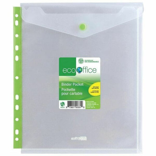 EcoOffice Poly Binder Pocket with Snap, Top Load - For Letter 8 1/2" (215.90 mm) x 11" (279.40 mm) Sheet - 11 x Holes - Ring Binder - Top Loading - Clear - Poly, Plastic - 1 Each
