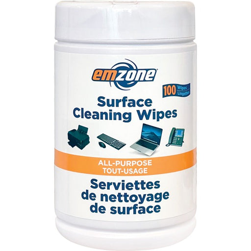Emzone All-Purpsoe Suface Cleaning Wipes 100 / canister - For Keyboard, Telephone, Mouse, Office Equipment - Quick Drying, Lint-free - 1 Each - White - For Keyboard, Telephone, Mouse, Office Equipment - Quick Drying, Lint-free - 1 Each - White
