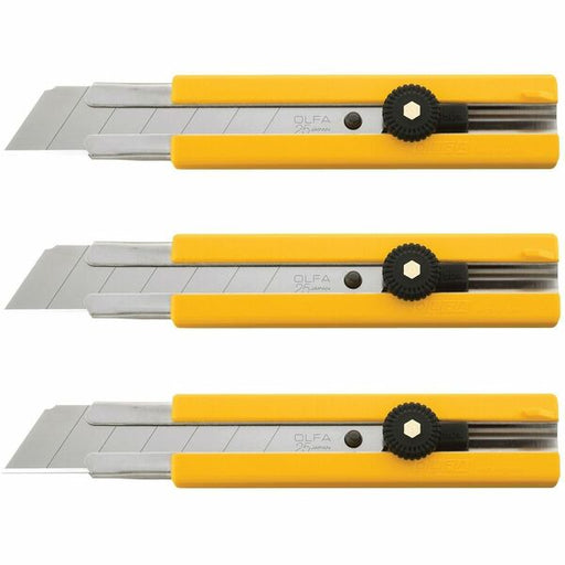 Olfa Classic Extra Heavy-Duty Ratchet-Lock Utility Knife with Anti-Slip Grip, 3-Pack - Stainless Steel Blade - 6.03" (153.16 mm) Height x 1.22" (30.99 mm) Width x 8.82" (224.03 mm) Length - Heavy Duty, Lockable Blade, Durable, Anti-slip, Rubber Grip - Sta