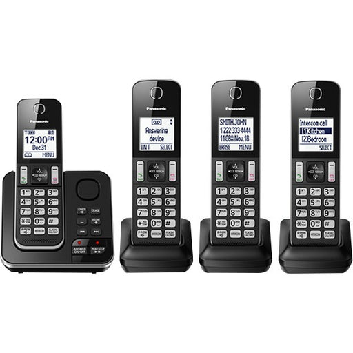 Panasonic KX-TGD394 DECT 6.0 1.93 GHz Cordless Phone - Black - 1 x Phone Line - 4 x Handset - Speakerphone - Answering Machine - Hearing Aid Compatible