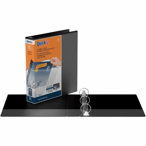 QuickFit D-Ring Deluxe Commercial File Binder - 1 1/2" (38.10 mm) Binder Capacity - 8 1/2" (215.90 mm) x 11" (279.40 mm) Sheet Size - 300 Sheet Capacity - Fastener(s): D-Ring - Pocket(s): Internal - Black - Recycled - 1 Each