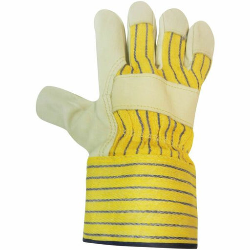 RONCO Care Gloves - Large - Large Size - Grain Leather - Yellow, Blue - Reinforced Fingertip, Knuckle Strap, Reinforced Cuff, Comfortable - For Assembly, Finished Goods, Landscaping, Warehouse, Inventory, General Labor, Industrial - 12 / Pack