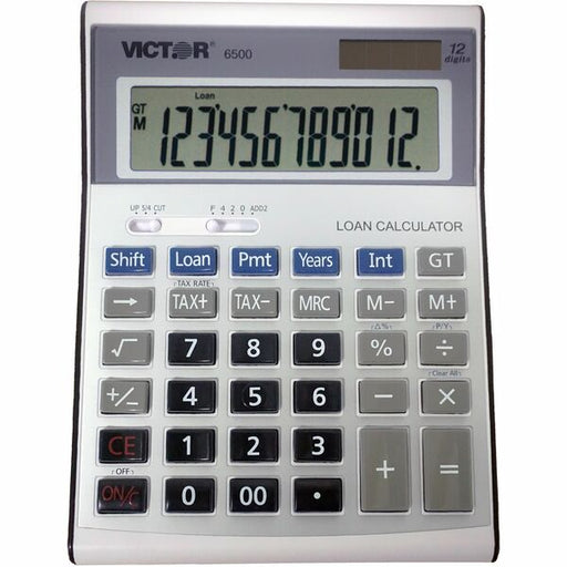 Victor 6500 Loan Wizard Desktop Calculator - Independent Memory - 12 Digits - Battery/Solar Powered - 1.8" (44.45 mm) Height x 5.8" (146.05 mm) Width x 7.9" (200.02 mm) Depth - Silver - Plastic - 1 Each
