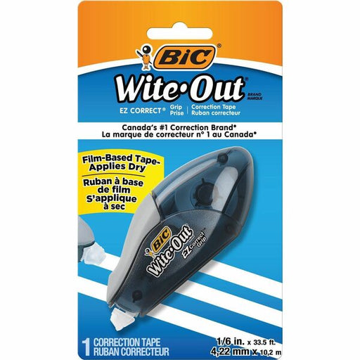 BIC Wite-Out Brand EZ Correct Correction Tape, White, Fast, Clean & Easy To Use, Tear-Resistant Tape, 1-Count - 1 Line(s) - Rubber Grip, Comfortable, Tear Resistant, Film-based, Non-refillable