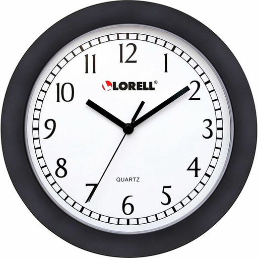 Lorell 9" Round Wall Clock - Analog - Quartz - White Main Dial - Black/Plastic Case