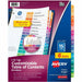 Marketing Information:Coordinated divider system makes referencing easy and delivers a professional look. The set includes a reinforced Table of Contents page, matching preprinted tab dividers in assorted colors, added tab reinforcement, double-sided hole reinforcement on tabbed dividers and paper made of heavy stock. 2-in-1 tab design lets you pick between portrait and landscape formats. Simply print the section titles onto the Table of Contents page using your inkjet or laser printer. Tab dividers are also compatible with typewriters and copiers. Dividers are three-hole punched for use in binders. Avery offers many easy-to-use templates for Microsoft Word and other popular software programs.