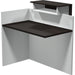 Non-handed Modern Reception Return expands the Innovations Modern Reception Desk (sold separately) for more room to create an L-shaped, welcome command center. Return is not freestanding and must be installed on the right or left side of the reception desk of the Innovations Series Reception that combines intelligent design and function with lasting durability. High-quality, 42" return features a wire-management grommet and two-tone finish that includes Pure White and Evening Zen laminate. This laminate is water-resistant, scratch-resistant, dent-resistant and burn-resistant and requires little maintenance to keep it looking great. The 1" thick top offers durable, premium, thermally fused laminate on top of 45 lb. industrial particleboard core. Walls on the convenient, one-compartment cubby on top of the return are 3/4" thick. Tough, 3mm thick, PVC color-matched edging provides excellent wear-resistance. Reception return has leveling glides for stability on uneven surfaces.