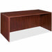 Rectangular desk shell is part of Lorell Essentials Series Laminate Furniture with high-quality laminate construction and metal-to-metal, cam-lock connections. Mahogany laminate top is 1" thick for durability. Use the two grommet holes in the top for easy cord routing. Design also includes a full modesty panel for privacy, 3mm PVC edges and adjustable feet.